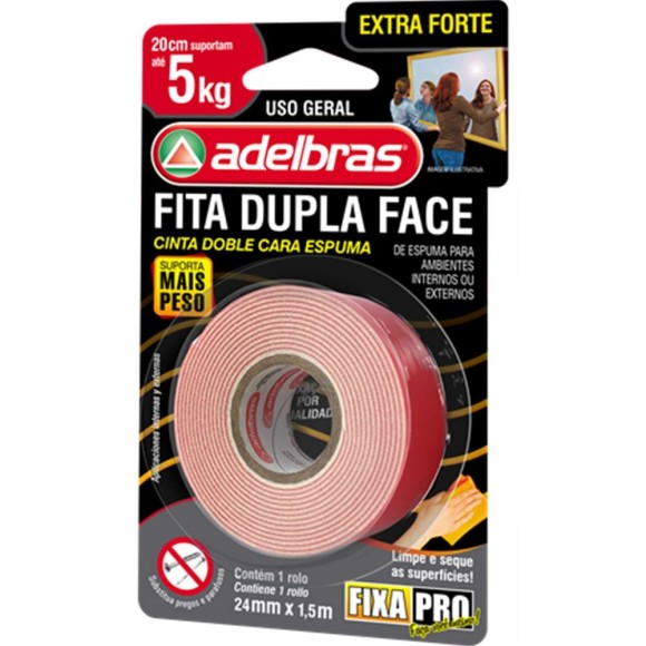 Fita Dupla Face Espuma Extra Forte 5Kg - 24mm x 1,5m Adelbras