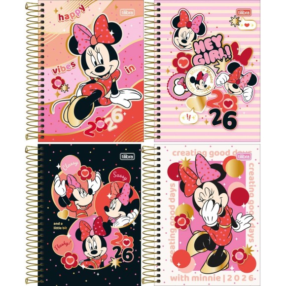 A Agenda 2026 Minnie da Tilibra é perfeita para quem ama organização com o charme e a alegria de uma das personagens mais icônicas da Disney. Com capa dura e acabamento metalizado, ela combina resistência e estilo, tornando o planejamento do dia a dia muito mais divertido. Suas páginas decoradas e adesivos em dobro permitem personalizar cada anotação, enquanto a visão diária (exceto aos sábados e domingos) garante espaço ideal para compromissos, metas e lembretes.