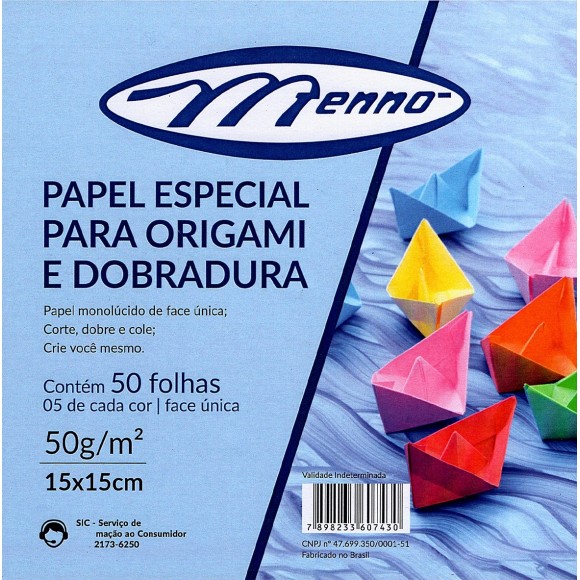 Papel Especial para Origami e Dobradura 15x15cm 50fls Menno