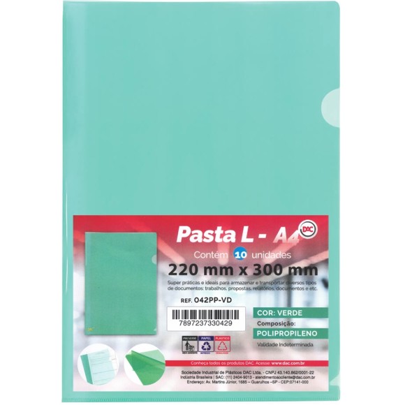 Pasta em L A4 - Verde 042PP-VD c/10 DAC