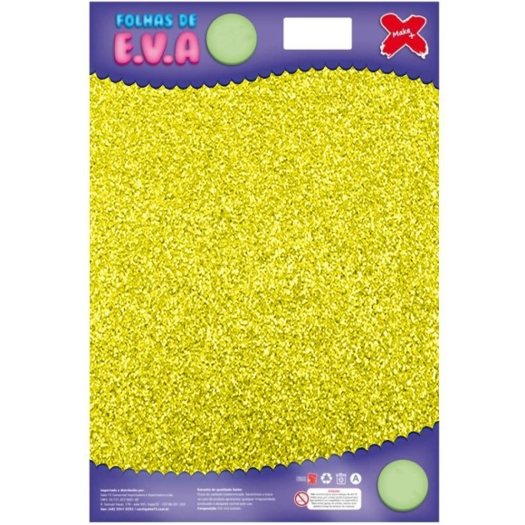 A Placa de EVA com Glitter Amarelo Neon da Make+ é ideal para ser utilizado em trabalhos decorativos, escolares e artesanato. Por conter características de borracha, também é utilizado como amortecedor de impactos. Pacote com 5.