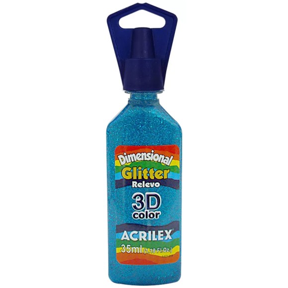 A Tinta Dimensional 3D Relevo Glitter Azul 35ml da Acrilex é ideal para ser utilizada em qualquer tipo de material poroso e aderente, como tecidos de algodão, madeira, cerâmica, gesso, papel, papelão, isopor.