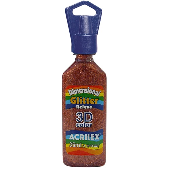 A Tinta Dimensional 3D Relevo Glitter Cobre 35ml da Acrilex é ideal para ser utilizada em qualquer tipo de material poroso e aderente, como tecidos de algodão, madeira, cerâmica, gesso, papel, papelão, isopor.