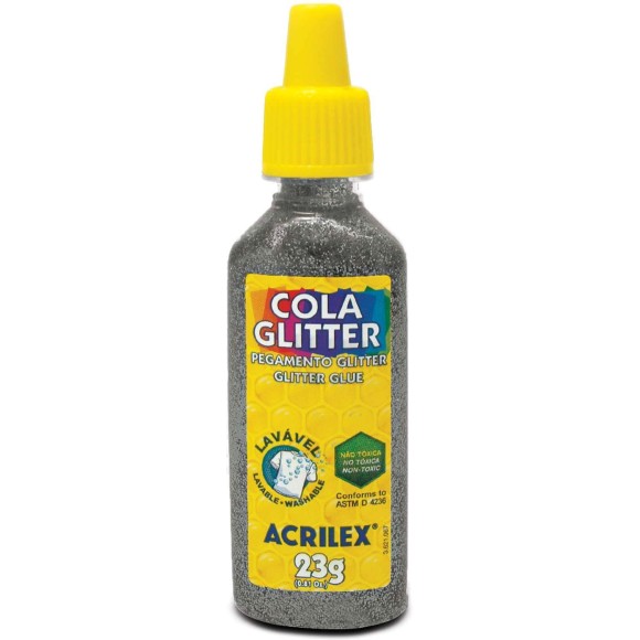 A Cola Glitter 23g Prata da Acrilex é perfeita para quem deseja adicionar um toque de brilho e criatividade aos trabalhos escolares, artesanais e de decoração. Sua fórmula à base de PVA com glitter proporciona um acabamento cintilante e colorido, ideal para uso em papel, cartolina e papel cartão. Com fácil aplicação e secagem rápida, é excelente para estimular a criatividade de crianças e adultos, sendo uma ótima aliada em atividades artísticas, confecção de cartões, enfeites e muito mais.