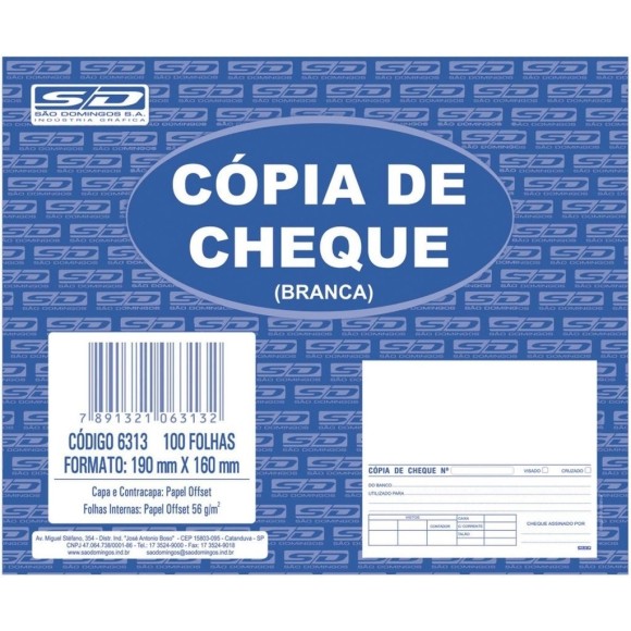 Cópia de Cheque Branca 100 Folhas São Domingos