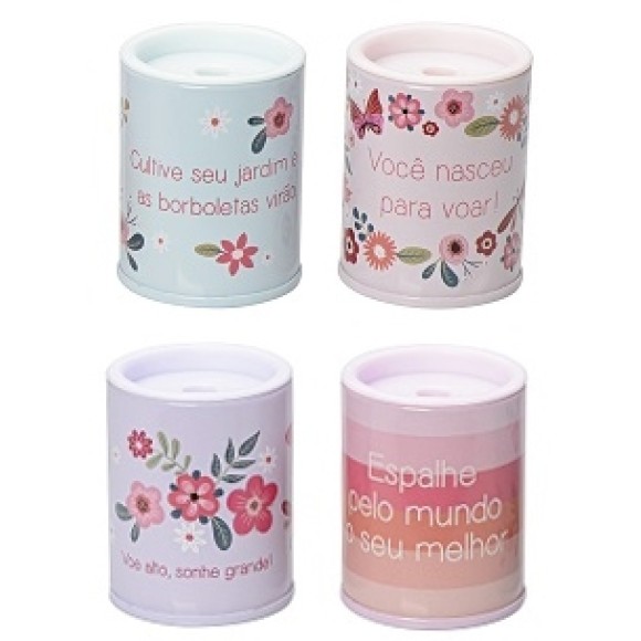 O Apontador com Depósito Borboletas da Molin contém um depósito metálico e estampas lindas.