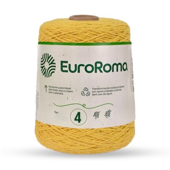 O Barbante EuroRoma N.4 600g - Amarelo Ouro da Eurofios é ideal para quem busca qualidade, sustentabilidade e versatilidade em seus trabalhos manuais. Produzido com 85% de algodão e 15% de outras fibras, é perfeito para diversas técnicas como crochê, tricô, macramê, tear, tapeçaria e artesanato em geral, agregando beleza e resistência às suas criações.