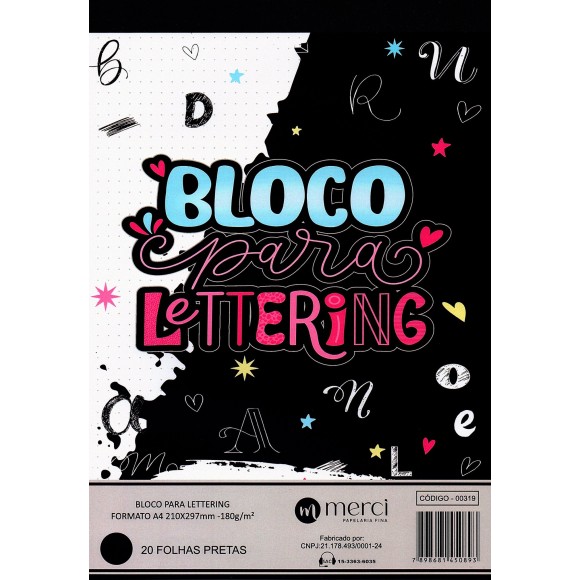 Bloco para Lettering A4 Preto 180g 20fls Merci Cadernos