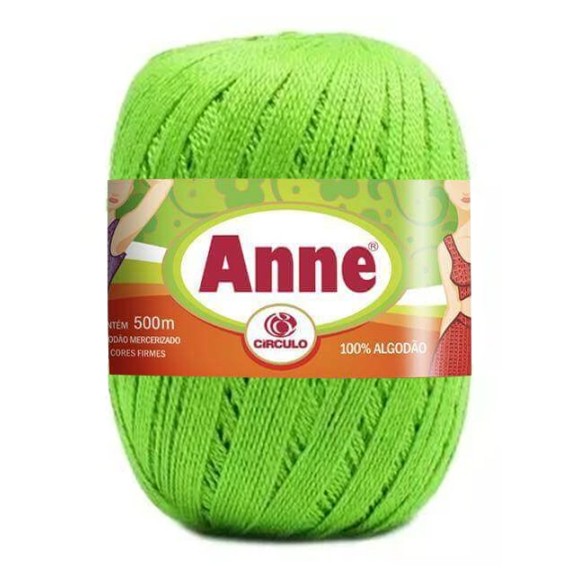 A Linha Anne Verde Cítrico da Circulo é um produto 100% algodão mercerizado, que proporciona acabamento cintilante e toque macio a sua confecção. Quando trabalhado com pontos mais fechados para meia estação e inverno, mantém a sua peça leve e suave. Na decoração é indicado principalmente para confecção de trilhos de mesa, toalhinhas decorativas, barrados em toalhas e panos de copa, pois possui um excelente rendimento.