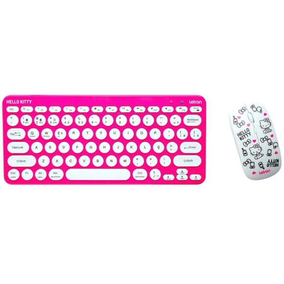 O Combo Teclado e Mouse Wireless/Bluetooth Hello Kitty da Letron é o kit perfeito para quem deseja adicionar um toque adorável e personalizado à sua estação de trabalho ou estudo. Inspirado na charmosa Hello Kitty, este combo não apenas oferece funcionalidade, mas também encanta com suas ilustrações exclusivas e edição limitada. Ideal para crianças, adolescentes e fãs da Hello Kitty, ele combina design e praticidade de forma única.