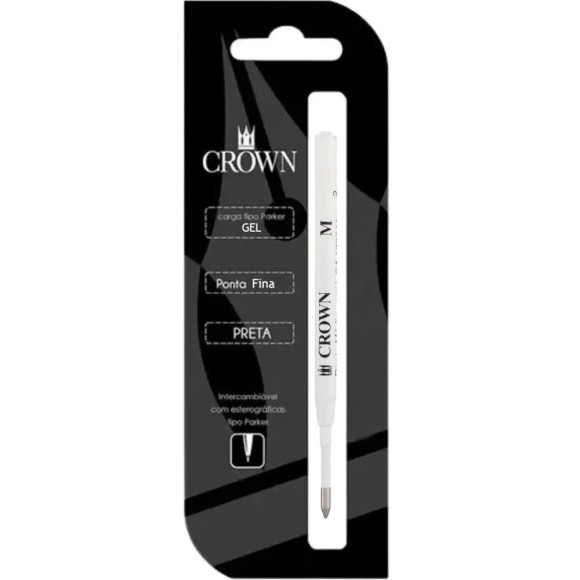 A Carga para Caneta Gel Tipo Parker Preta da Crown oferece uma experiência de escrita suave, precisa e de alto desempenho, perfeita para profissionais, estudantes ou para uso pessoal. Produzida com tinta alemã de alta qualidade, proporciona cores intensas e uniformes, enquanto a ponta fina de 0,5mm garante traços precisos, firmes e elegantes. O cartucho conta com ponta coreana protegida por silicone, aumentando a durabilidade e evitando vazamentos, além de ser intercambiável com canetas esferográficas tipo Parker, garantindo versatilidade e compatibilidade. Com capacidade para até 500 metros de escrita contínua, esta carga combina qualidade, confiabilidade e conforto em cada traço, refletindo o padrão premium da marca Crown.
