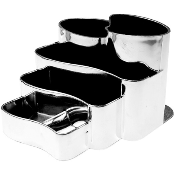 O Porta Canetas Metalizado Prata da Dello é injetado em poliestireno e contém 7 divisões como opções de uso.