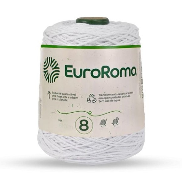O Barbante EuroRoma N.8 600g - Branco da Eurofios oferece ainda mais resistência e volume para seus projetos artesanais. Composto por 85% de algodão e 15% de outras fibras, é uma opção sustentável e de alta qualidade para trabalhos que exigem firmeza e acabamento marcante. Ideal para crochê, tricô, macramê, tear, tapeçaria e outras técnicas manuais.