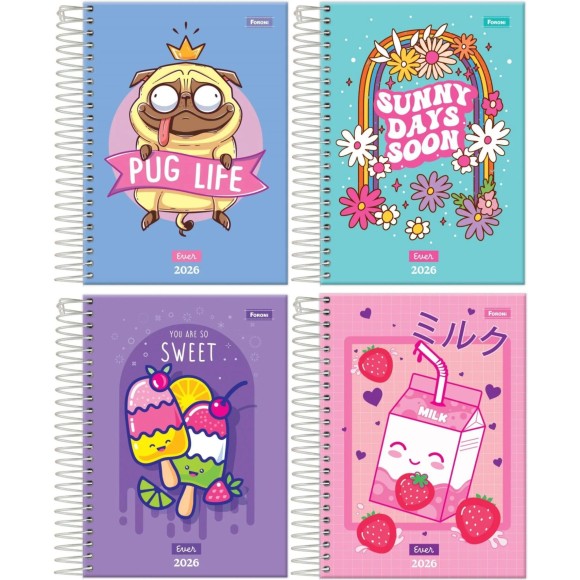 A Agenda 2026 Ever da Foroni é perfeita para quem busca organização com um toque divertido e cheio de estilo. Suas capas apresentam elementos fofos e coloridos, garantindo um visual alegre que combina com diferentes personalidades. Ideal para uso escolar, pessoal ou até mesmo no trabalho, a agenda conta com miolo datado e visão de 1 dia por página (exceto sábado e domingo), permitindo planejar cada compromisso de forma prática e eficiente. Compacta e resistente, possui capa dura, 176 folhas de gramatura 56g/m² e tamanho de 123mm x 170mm, sendo fácil de transportar e ótima para acompanhar a rotina com leveza e criatividade.