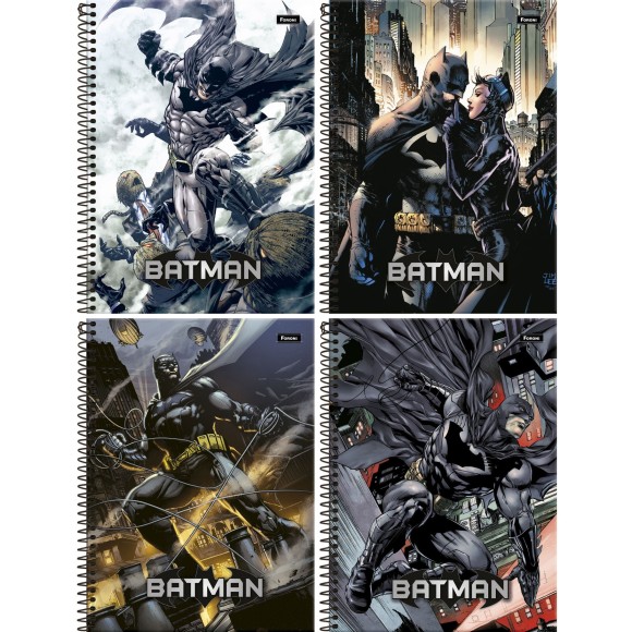 O Caderno Batman 15 Matérias 240 folhas possui capa dura com laminação fosca, parte interna decorada, bolsa plástica para guardar trabalhos e anotações, folha de adesivos, folhas pautadas decoradas e espiral. Ideal para o dia a dia na escola ou faculdade.
