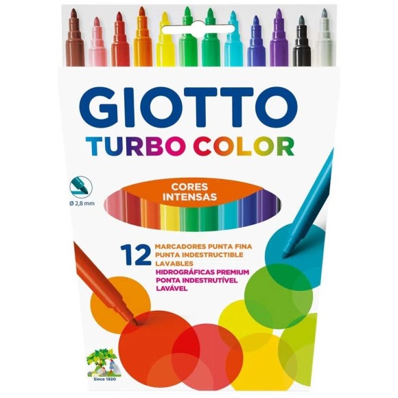 A Canetinha Hidrográfica 12 Cores da Giotto é a escolha perfeita para artistas de todas as idades. Com cores intensas e uma fórmula de tinta lavável, oferece praticidade e qualidade, garantindo momentos criativos com segurança. Sua ponta resistente de 2.8mm não afunda, tornando-a ideal para desenhos, pinturas e atividades escolares.
