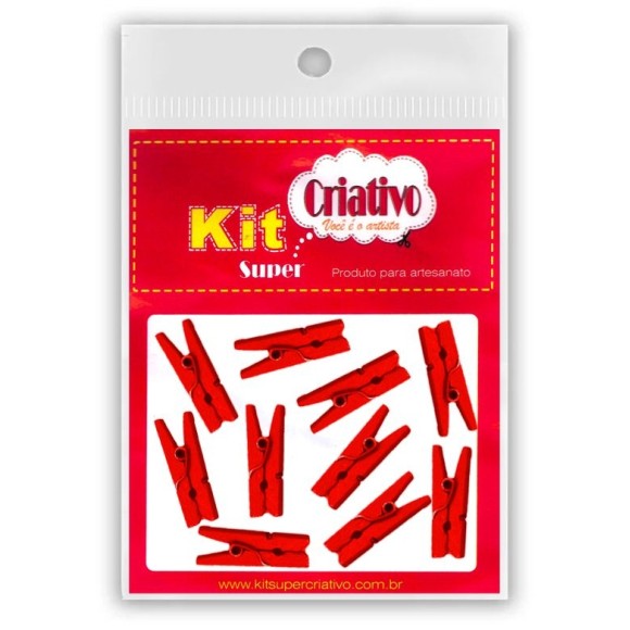 Mini Pregador 25mm - Vermelho c/10 Kit Super Criativo