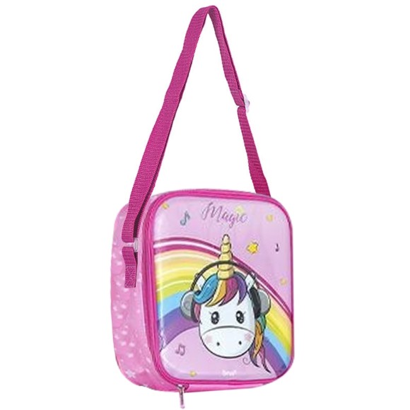 A Lancheira Térmica Magic Rosa da BRW possui forro térmico cinza para evitar manchas, elástico interno para prender alimentos, alça tira colo com regulagem e elástico para prender na alça da mochila com carrinho e visor externo para nome da criança.