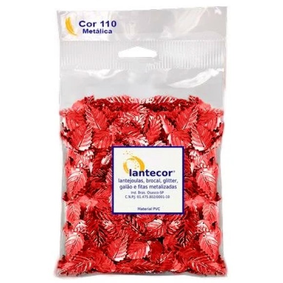 A Folha Pequena Metalizada Vermelha da Lantecor são lantejoulas em formato de folha com furo lateral. As cores metálicas tem excelente qualidade, e seu acabamento reflete como um espelho, deixando o produto com alto grau de brilho e sofisticação.