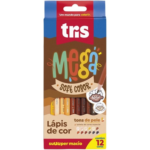 O Lápis de Cor 12 Cores Triangular Tons de Pele Mega Soft Color da Tris é o primeiro conjunto com seleção especial de tons de pele produzido no Brasil! Com cores cuidadosamente inspiradas na diversidade da pele humana, ele é ideal para estimular a representatividade e promover a inclusão nas criações artísticas. Possui corpo triangular que proporciona pegada ergonômica e traço super macio que desliza suavemente sobre o papel. A linha Mega Soft Color também oferece excelente cobertura, com lápis de madeira resistentes e cores intensas, que ajudam a dar vida a cada detalhe dos seus desenhos.
