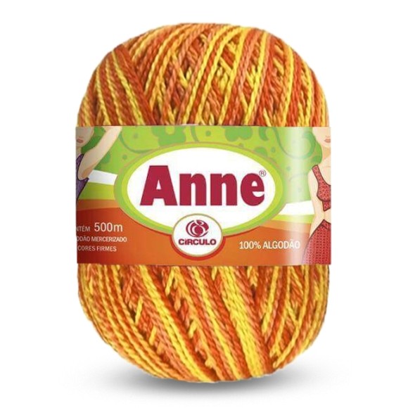 A Linha Anne Laranja Mesclado da Circulo é um produto 100% algodão mercerizado, que proporciona acabamento cintilante e toque macio a sua confecção. Quando trabalhado com pontos mais fechados para meia estação e inverno, mantém a sua peça leve e suave. Na decoração é indicado principalmente para confecção de trilhos de mesa, toalhinhas decorativas, barrados em toalhas e panos de copa, pois possui um excelente rendimento.