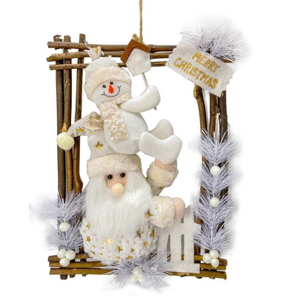 A Placa Natalina Papai Noel / Boneco de Neve Star Gold da Magizi é um lindo enfeite para decorar sua casa neste Natal. Com um design encantador e festivo, ela apresenta o tradicional Papai Noel e o alegre Boneco de Neve, ambos em tons branco com dourado, que remetem ao glamour da época natalina.