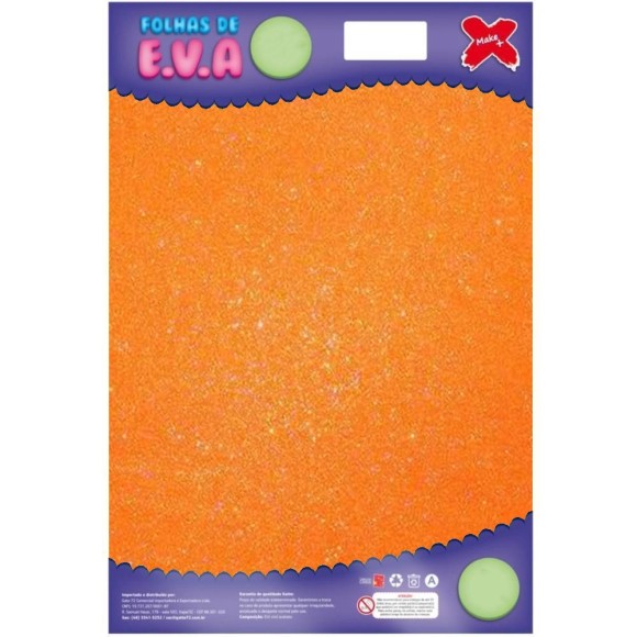 A Placa de EVA com Glitter Laranja Neon da Make+ é ideal para ser utilizado em trabalhos decorativos, escolares e artesanato. Por conter características de borracha, também é utilizado como amortecedor de impactos. Pacote com 5.