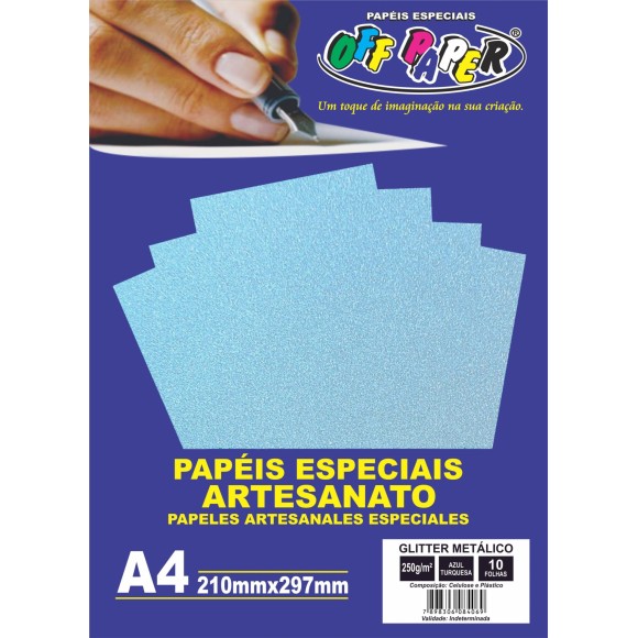 Papel Glitter Metálico A4 Azul Turquesa 250g 10fls Off Paper