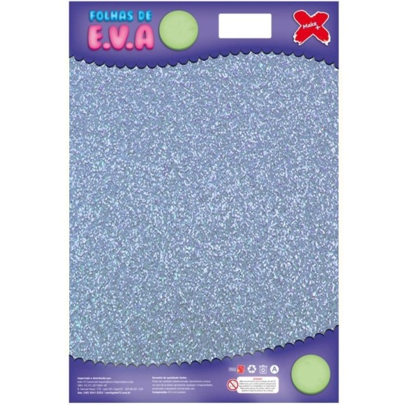A Placa de EVA com Glitter Gelo da Make+ é ideal para ser utilizado em trabalhos decorativos, escolares e artesanato. Por conter características de borracha, também é utilizado como amortecedor de impactos. Pacote com 5.