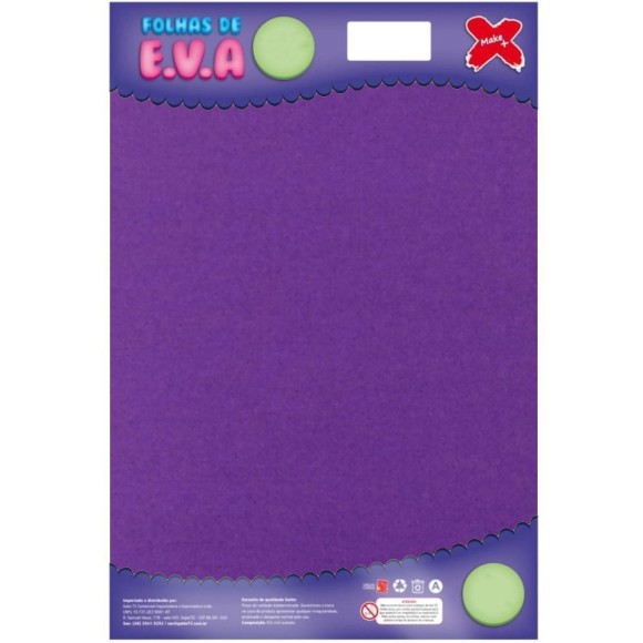 A Placa de EVA Roxo da Make+ é ideal para ser utilizado em trabalhos decorativos, escolares e artesanato. Por conter características de borracha, também é utilizado como amortecedor de impactos. Pacote com 10 placas.