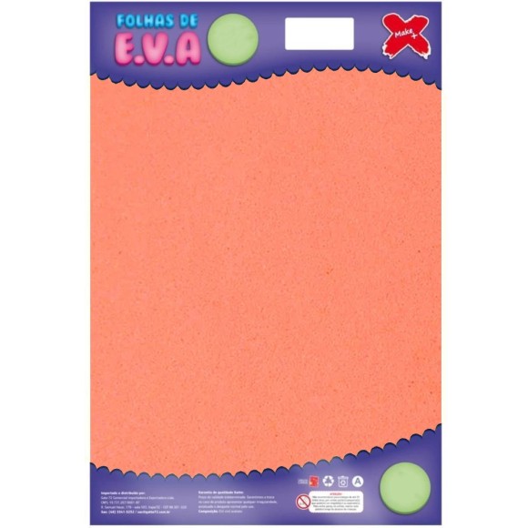 A Placa de EVA Salmão da Make+ é ideal para ser utilizado em trabalhos decorativos, escolares e artesanato. Por conter características de borracha, também é utilizado como amortecedor de impactos. Pacote com 10 placas.