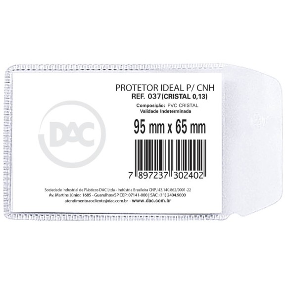 O Protetor de Documento 037 é ideal para proteger o CNH, com material de alta durabilidade. A DAC é líder no segmento de protetores para documentos. Pacote com 100 protetores.