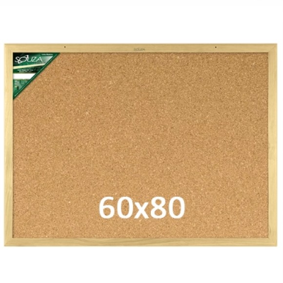 O Quadro de Cortiça 60x80 da Souza é constituido de dupla camada de papelão, revestido por 1 folha de cortiça de 1mm. O acabamento é feito com moldura de madeira pinus natural pop que é uma moldura mais simples, sendo este produto uma alternativa econômica mais para uso em residências e ambientes de home office.